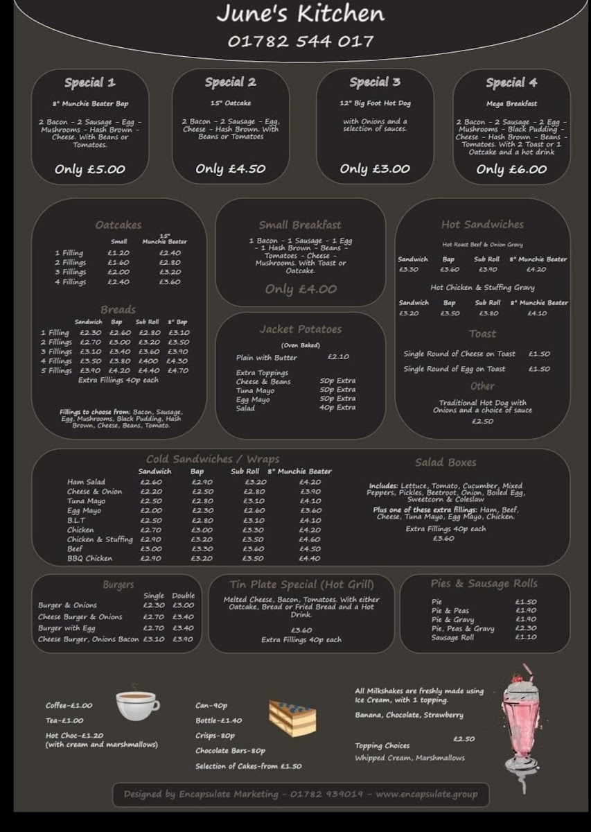 Nestled in Stoke-on-Trent, June's Kitchen is a charming café that beckons food lovers with an inviting menu. The star of the show is undoubtedly their cooked breakfasts, celebrated for their quality and generous portions. Customers rave about the breakfast baps, each brimming with flavor and made fresh to order, making them a hearty start to any day.